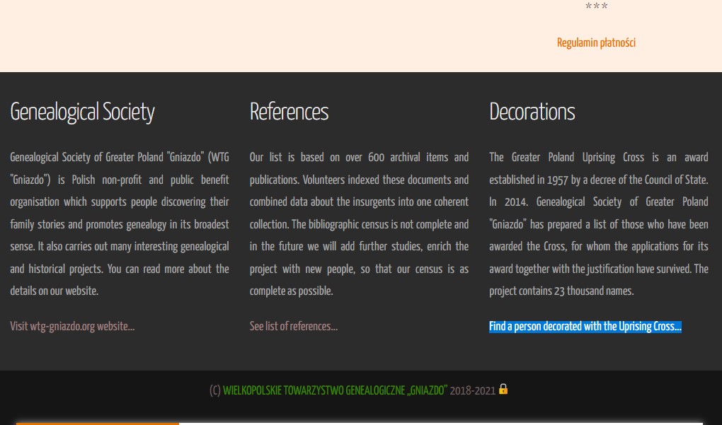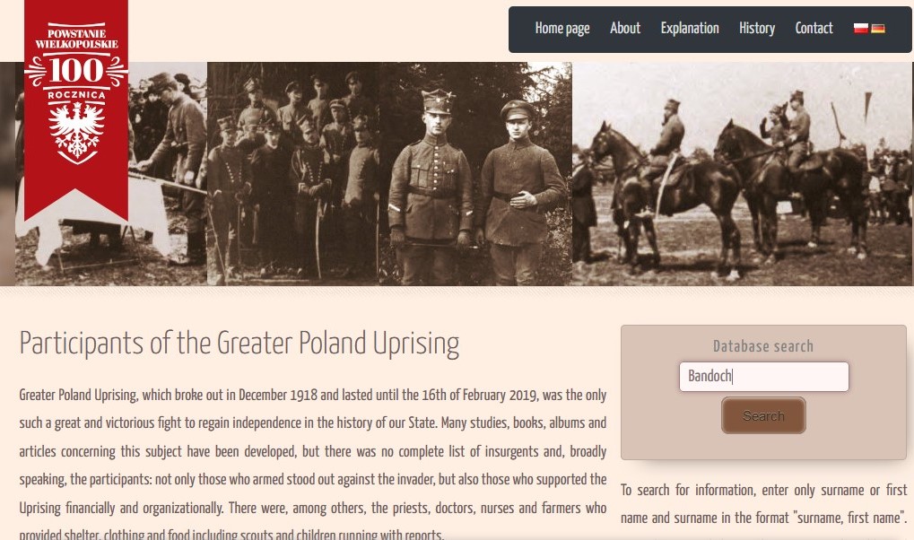 From a huge number of sources, scattered across many archives and other institutions, the Greater Poland Genealogical Society (Wielkopolskie Towarzystwo Genealogiczne) has created a database with biograms of Greater Poland insurgents.