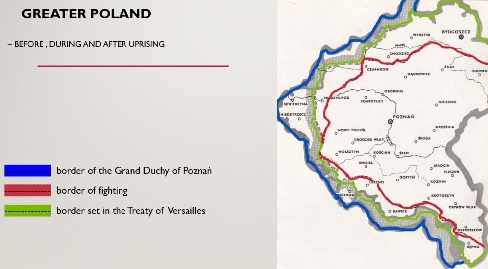 As you can see, although the Grand Duchy of Poznań (corresponding to the Posen province) was slightly larger than the areas granted to Poland, the area covered by insurgent activities was smaller than the obtained area.