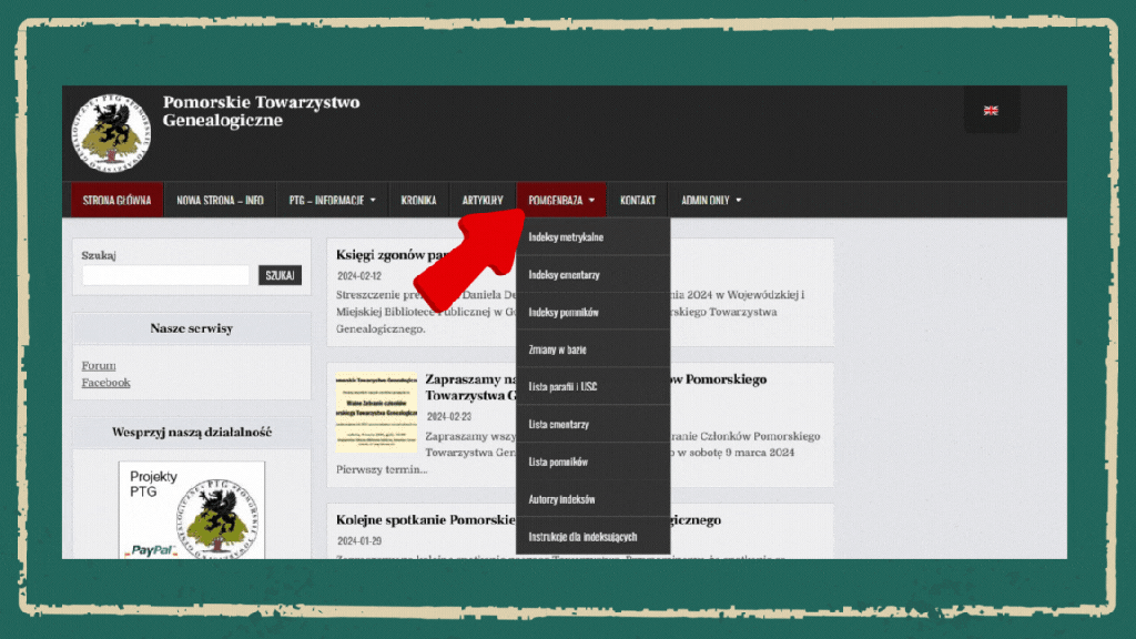 The PTG search engine is the most important tool for searching for ancestors in the current Pomeranian Voivodeship. It should not be confused with the Polish Genealogical Society. The abbreviation is the same, but the search engine of the Polish Genealogical Society is the famous Geneteka. The PTG also serves the northern part of the Kuyavian-Pomeranian Voivodeship and the eastern part of the West Pomeranian Voivodeship. And a piece of Greater Poland.