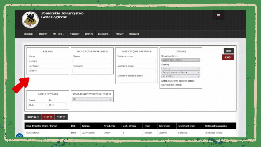 This website is invaluable for many people. It provides reliable information on how to look for their ancestors in the area of current or former Poland. I recently wrote about Eastern Poland. This article will focus on the search engine of the Pomeranian Genealogical Society. This is the main tool for searching in Northern Poland.